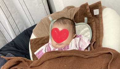 生後2ヶ月の赤ちゃんと一緒に来院♪パパとママが交代でリラックスの鍼灸時間